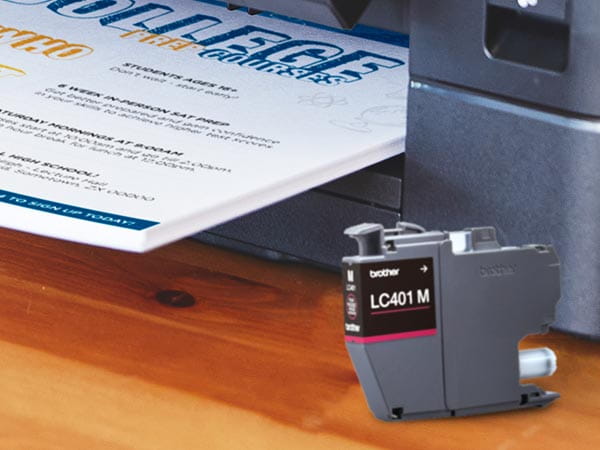 The Brother Genuine LC401M magenta ink cartridge provides bright colors and superior inkjet print quality you can consistently rely on for up to 200 pages(1).